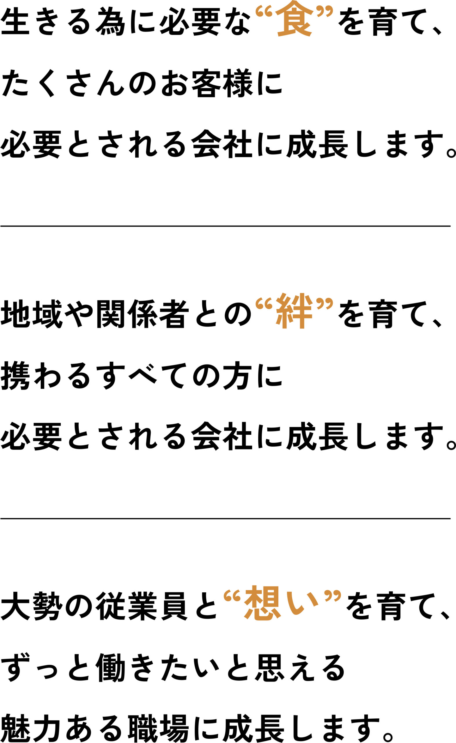 みんなで育てていきたい。野菜も会社も。スタッフ全員がやりがいや喜びをもって働ける「土」を作り、その土で育った作物が全国のお客様のもとに届き、喜びとして実る。そんな会社を目指しています。
